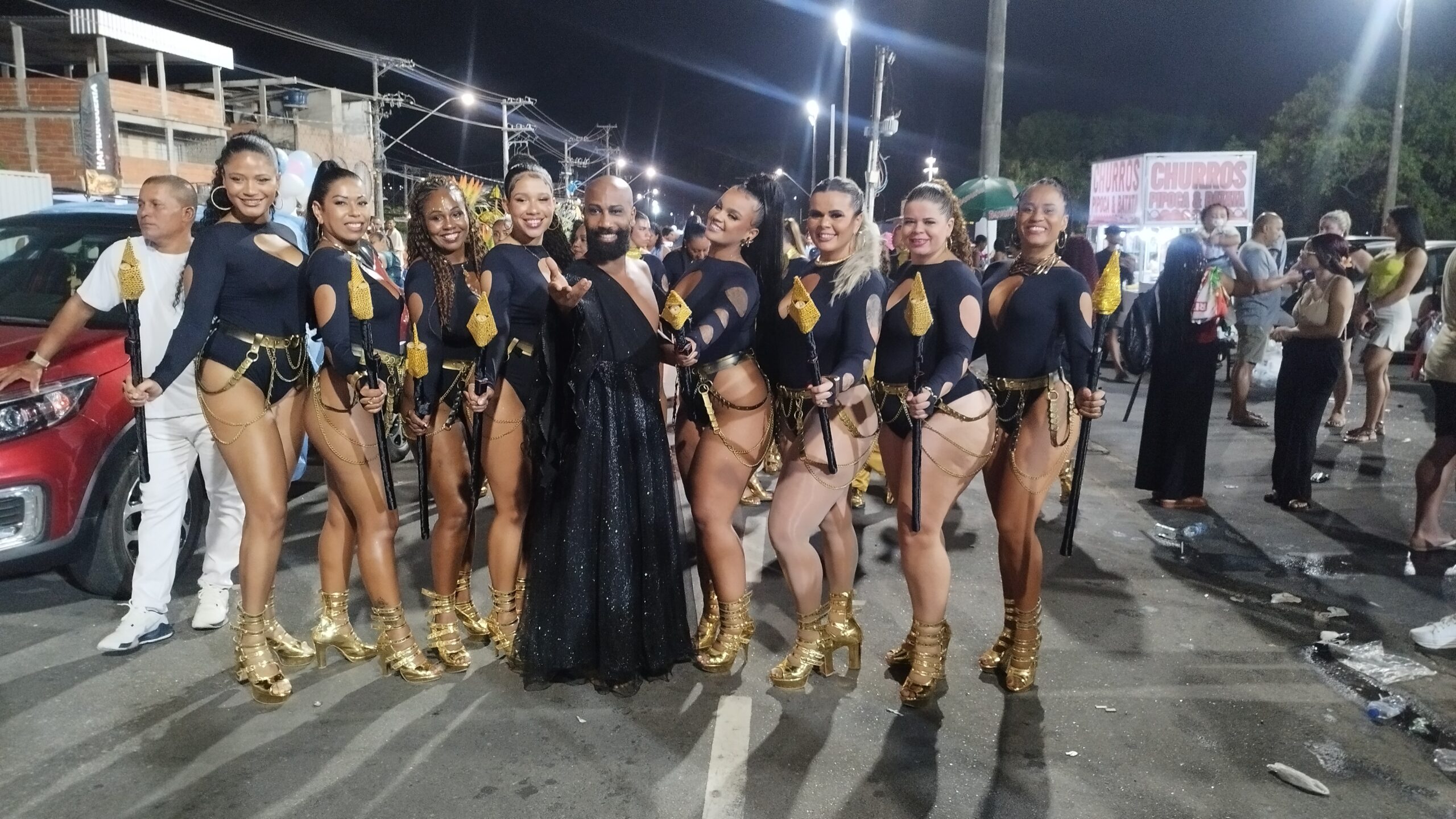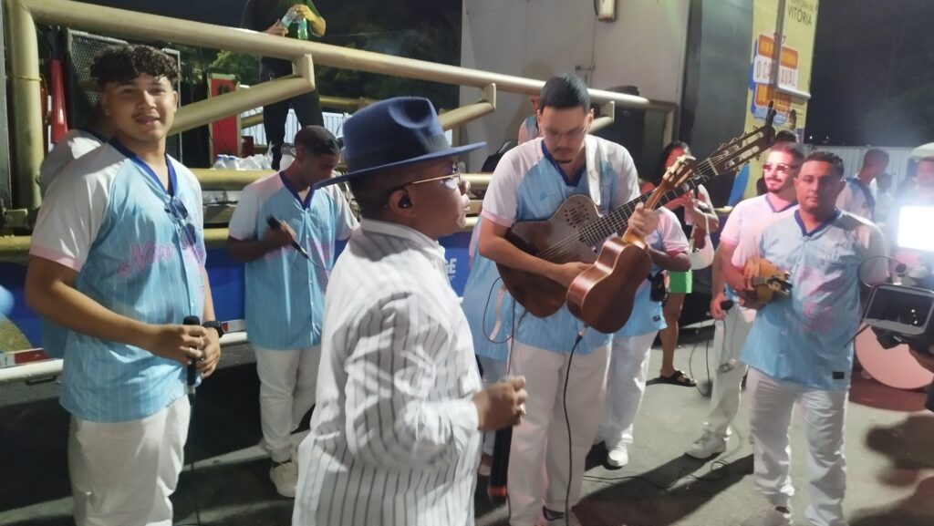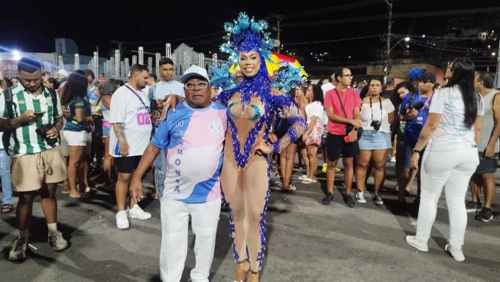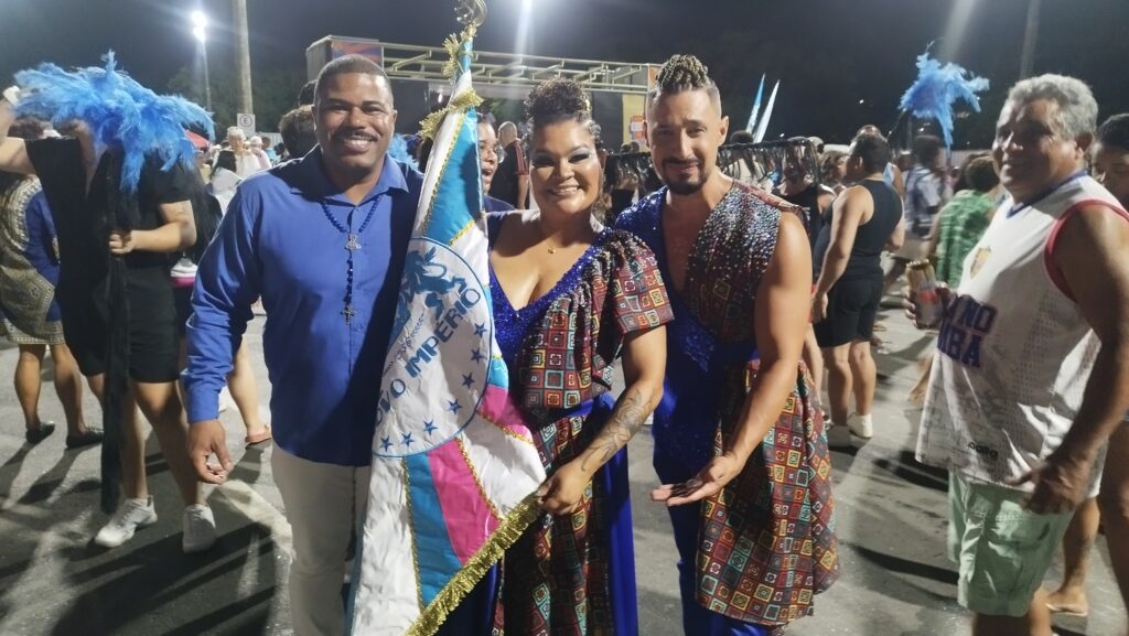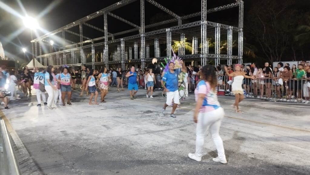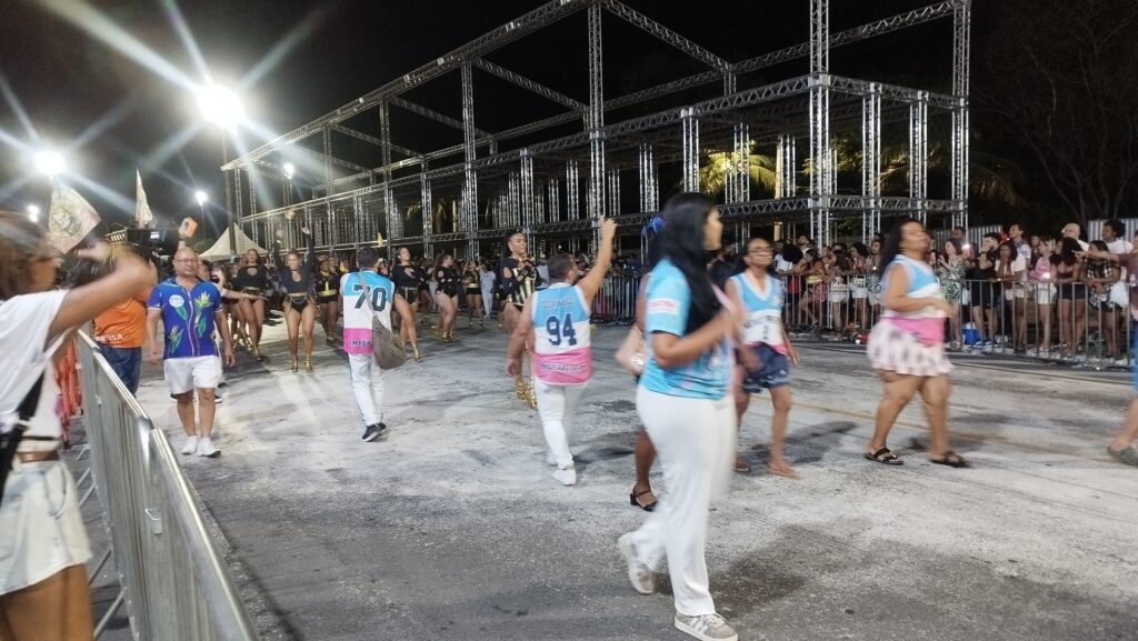 A tradicional escola de samba Novo Império, do Bairro de Caratoíra, cuja cores são Azul, Branco e Rosa, realizou – brilhantemente – o seu ensaio técnico na Passarela de Samba. Entre os ótimos momentos apresentados no decorrer dos 60 minutos de ensaio, destaco o carro de som comandado pelo intérprete Danilo César, a bateria carinhosamente chamada de “Orquestra Capixaba de Percussão”, comandada pelo Mestre Vinicius Seabra, como também do primeiro casal de Mestre-sala e Porta-bandeira formado por Weskley Blank e Alana Marques. Nota: como para mim foi prazeroso e motivo de felicidade ver muitas crianças na faixa etária entre 12 e 16 anos tocando os seus instrumentos com responsabilidade, desenvoltura, sorrisos, e principalmente, amor ao Pavilhão Azul, Branco e Rosa da escola de samba Novo Império.