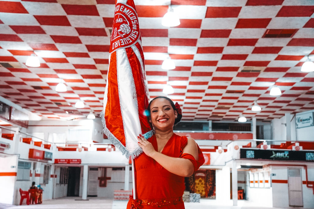 Salgueirense de coração, Jéssica chega realizando um sonho antigo ao vestir o vermelho e branco. A nova 3ª porta-bandeira revelou ainda que o convite para integrar o elenco partiu de Sidclei Santos, primeiro mestre-sala da escola.